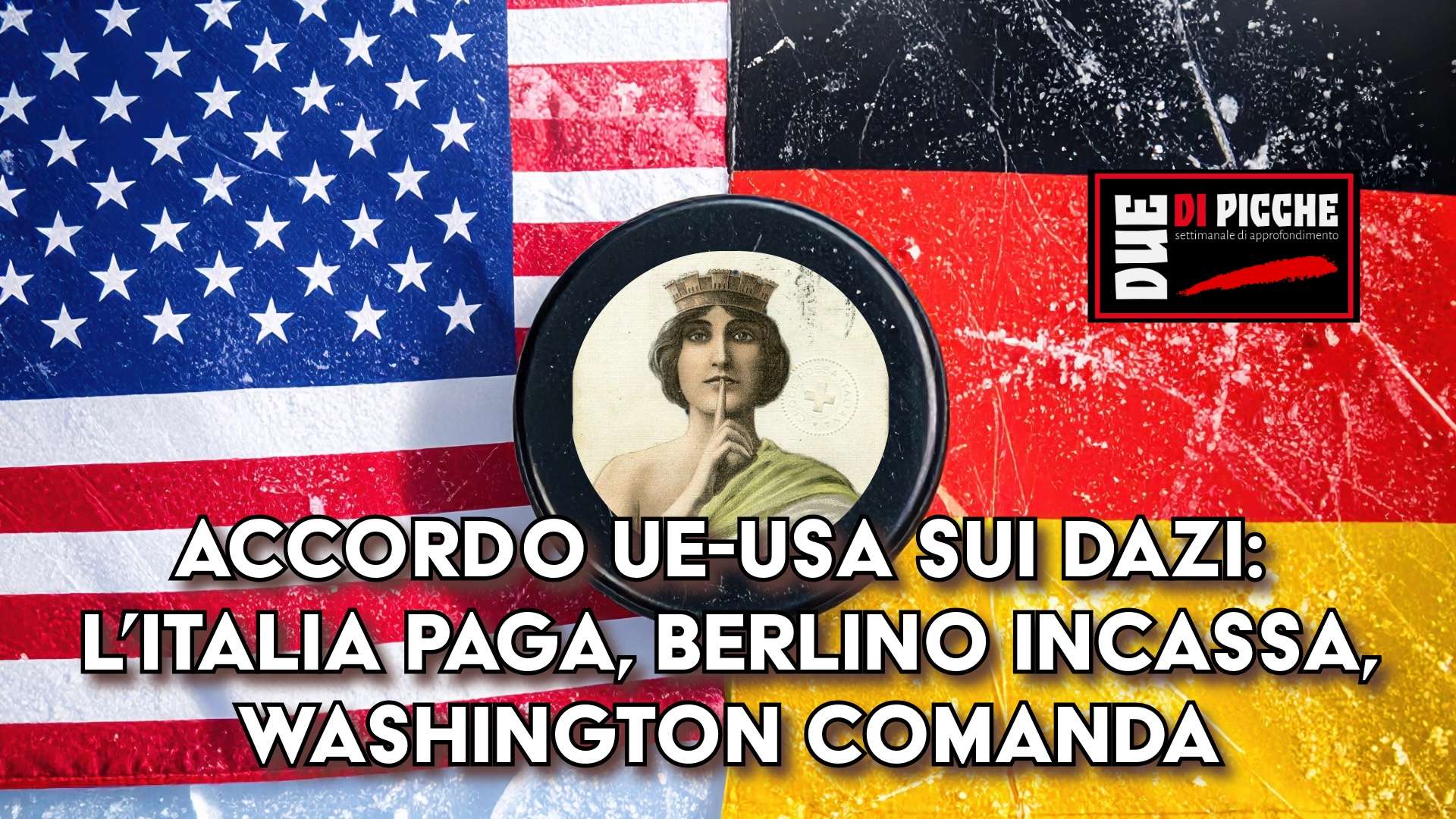 L’accordo siglato ieri da Ursula von der Leyen con gli Stati Uniti in materia di dazi rappresenta un nuovo passo nell’asservimento sistemico dell’Unione Europea agli interessi di Washington. Ma, come da copione, è l’Italia a trovarsi nella posizione peggiore: quella del contribuente silente, dell’esecutore muto, del vaso di coccio tra vasi di ferro.