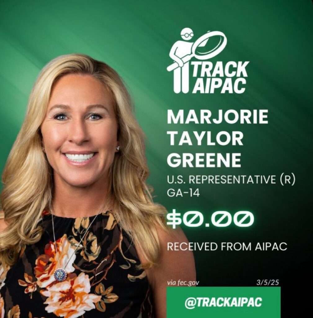 Una posizione non molto diversa da quella di Marjorie Taylor Greene, l’ultrà MAGA che già si era espressa contro l’intervento USA in Iran (ci siamo occupati della notizia qualche giorno fa, se ve la siete persa la trovate qua). L’esponente è tornata alla carica con questa locandina: