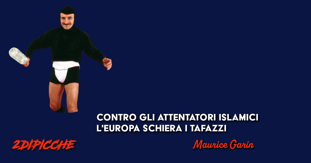 Contro gli attentatori islamici l’Europa schiera i Tafazzi – Tafazzi è un curioso personaggio che, in calzamaglia nera e sospensorio bianco, si randellava furiosamente le parti intime con una bottiglia vuota, saltellando e canticchiando.