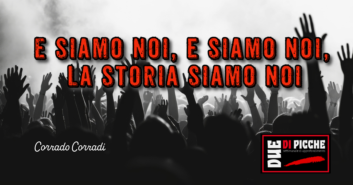 Una tiritera di una canzoncina che, per usare un eufemismo, ritengo essere banale, dice “e siamo noi, e siamo noi, la storia siamo noi”.