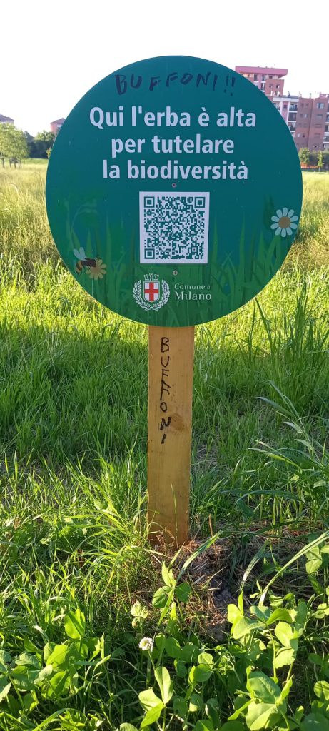Qualche milanese dotato di un buon pennarello però ci tiene a far sapere al nostro sindaco cosa pensa delle sue iniziative e della biodiversità: