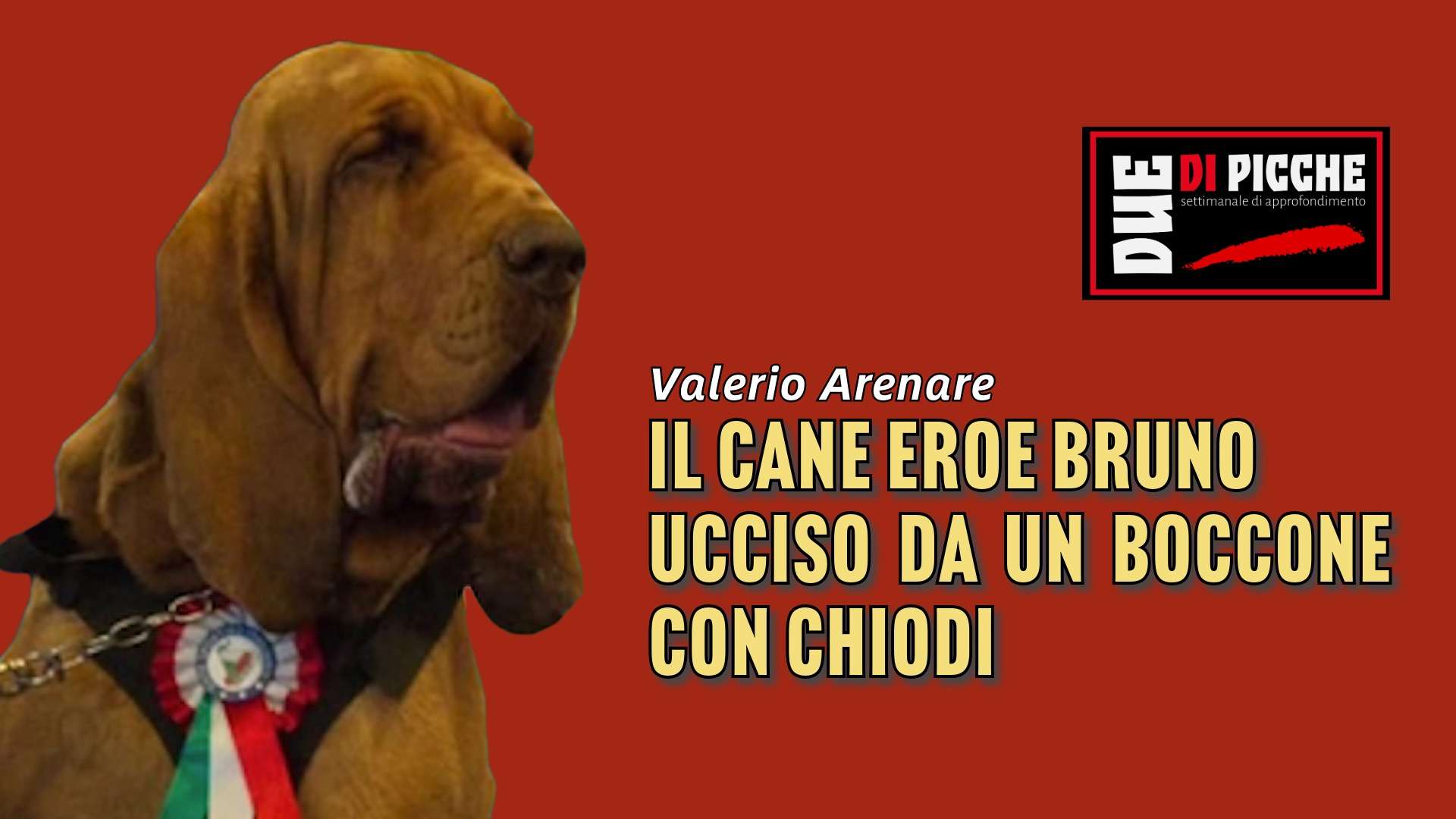 Bruno, un cane dal fiuto infallibile e dal cuore grande, è stato strappato alla vita in modo atroce: un boccone avvelenato e imbottito di chiodi ha messo fine alla sua esistenza. Per molti era solo un cane, per chi lo conosceva era un compagno insostituibile, un collega, un amico.