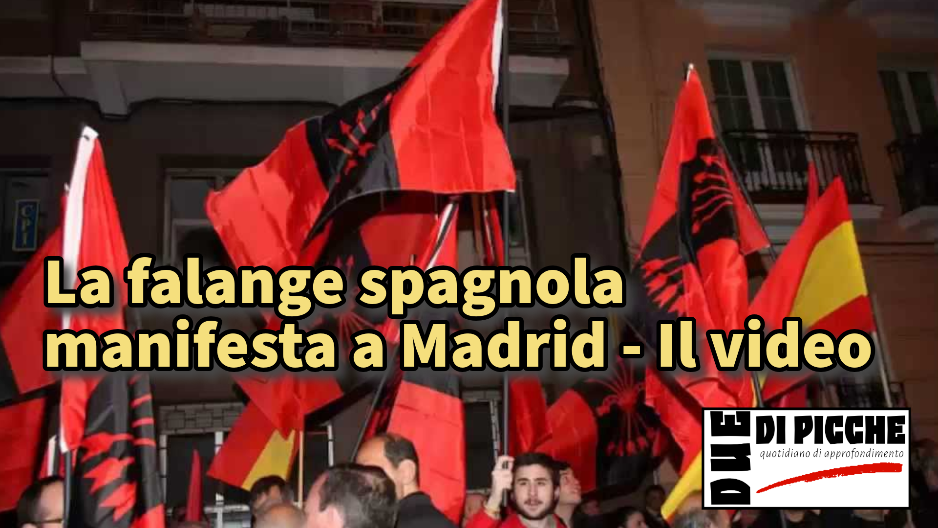La falange spagnola manifesta a Madrid – il video – La falange 𝗝𝘂𝘃𝗲𝗻𝘁𝘂𝗱𝗲𝘀 𝗱𝗲 𝗟𝗮 𝗙𝗮𝗹𝗮𝗻𝗴𝗲 𝗝𝗙𝗘 – 𝗦𝗘𝗨 ha sfilato a Madrid in piazza Callao, pieno centro della capitale spagnola.