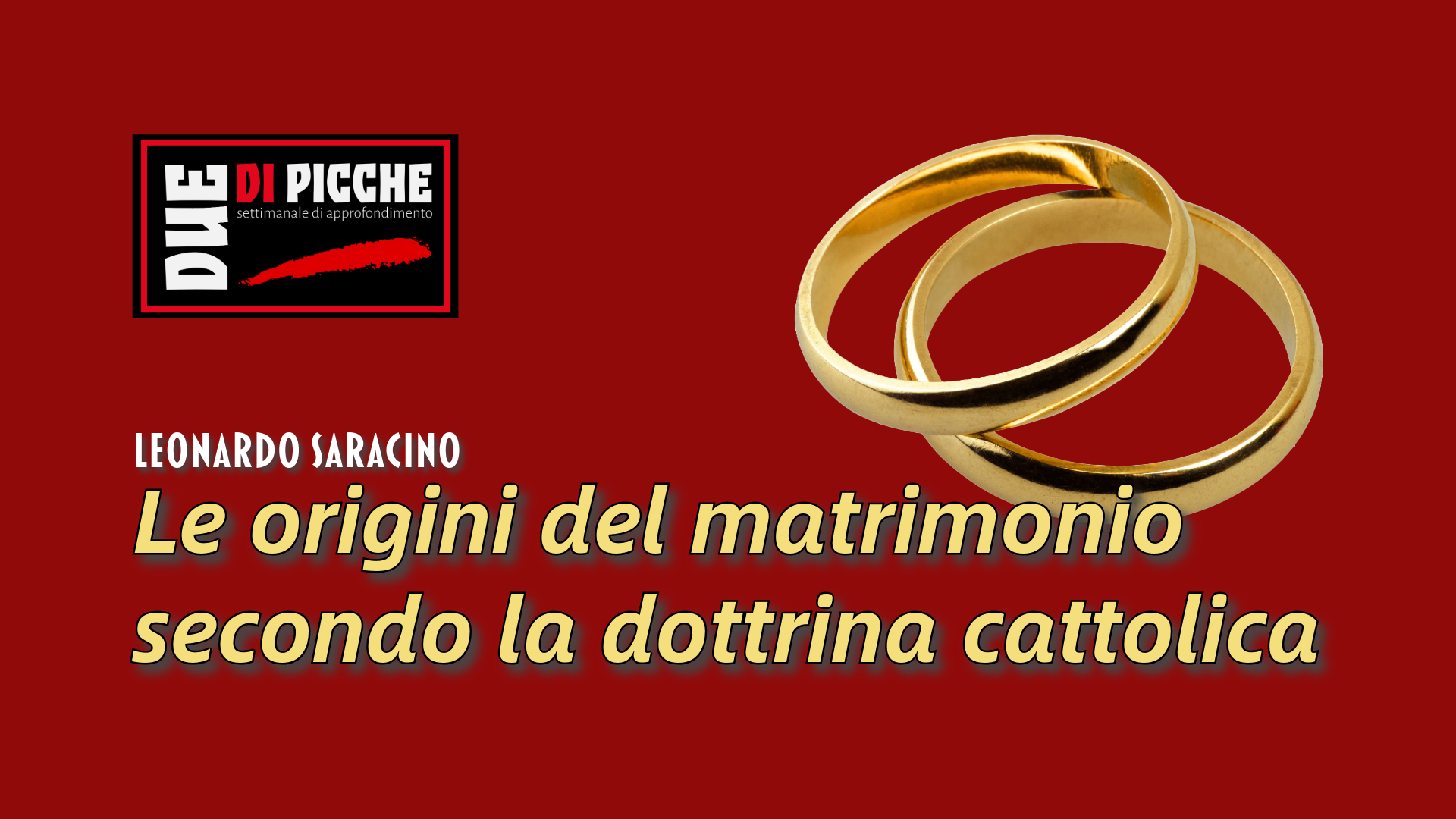 Secondo la dottrina cattolica il matrimonio NON è un’invenzione della società umana, ma è stato istituito direttamente da Dio tra i due primi esseri umani: Adamo ed Eva. Questi, infatti, sono realmente esistiti e non sono due figure simboliche, come chiarisce bene Papa Pio XII nell’enciclica Humani Generis, contro l’errore del “poligenismo”, cioè l’idea che l’origine dell’umanità sia plurale, da tante coppie diverse, concetto che si sposa bene con l’evoluzionismo darwiniano e sostenuto dai modernisti degli anni ’50, cioè dai rappresentanti della terribile Nouvelle Théologie!