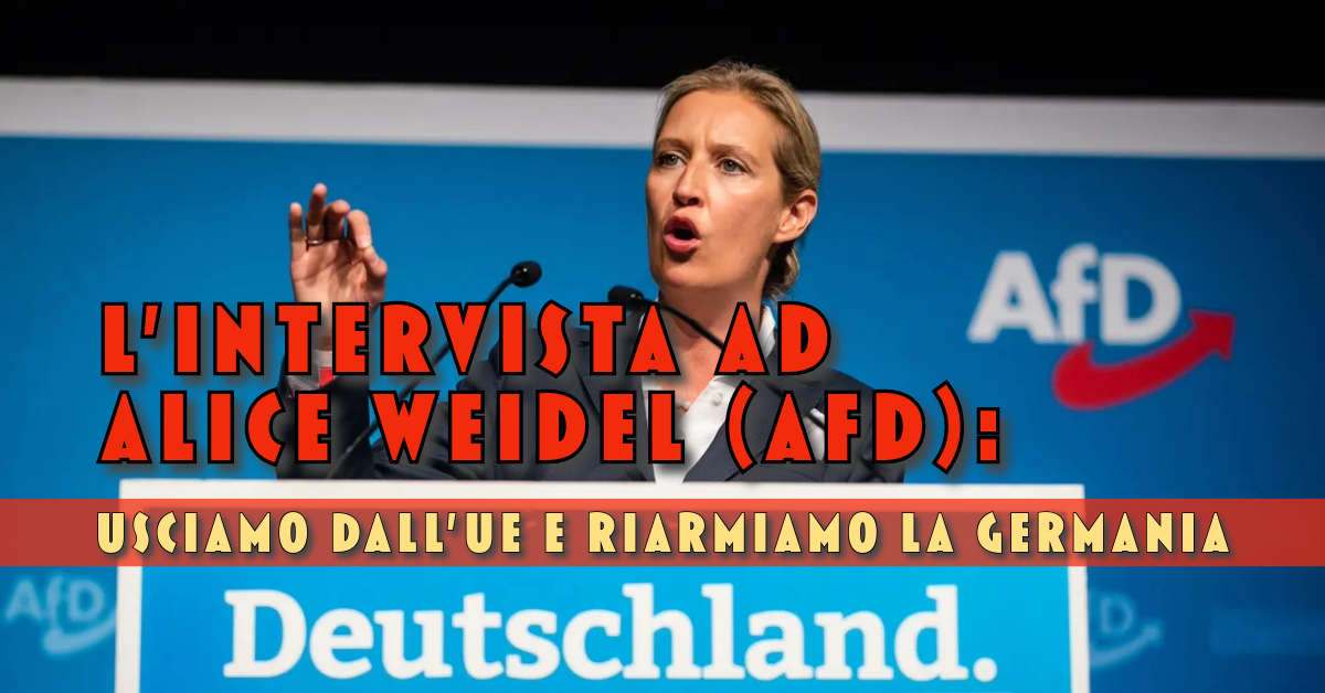 L’intervista ad Alice Weidel (AfD): usciamo dall’UE e riarmiamo la Germania – Lunga e densa intervista apparsa su The American Conservative alla candidata di punta del partito AfD tedesco.