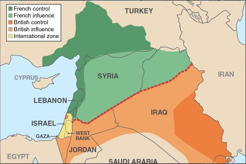 (1) L’accordo Sykes-Picot (ufficialmente, accordo sull’Asia Minore) è un trattato segreto stipulato tra il governo del Regno Unito di Gran Bretagna e Irlanda e quello della Repubblica francese, che definiva le rispettive sfere di influenza nel Medio Oriente in seguito alla sconfitta dell’impero ottomano nella prima guerra mondiale. https://it.wikipedia.org/wiki/Accordo_Sykes-Picot