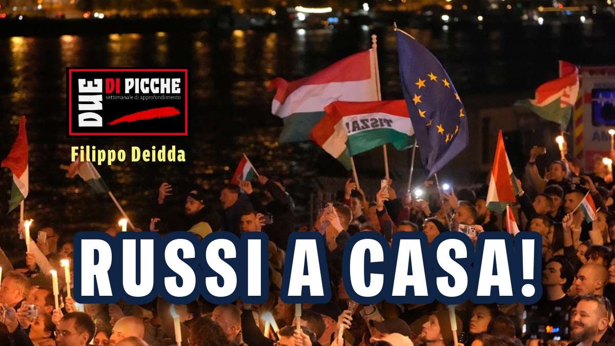Similmente scandivano quei giovani a gran voce il coro: “Ruszkik Haza” (“russi a casa”), per festeggiare la dipartita di Orban, notoriamente il capo di governo (insieme allo slovacco Fico) più aperto a Mosca tra gli stati membri dell’Unione Europea.
