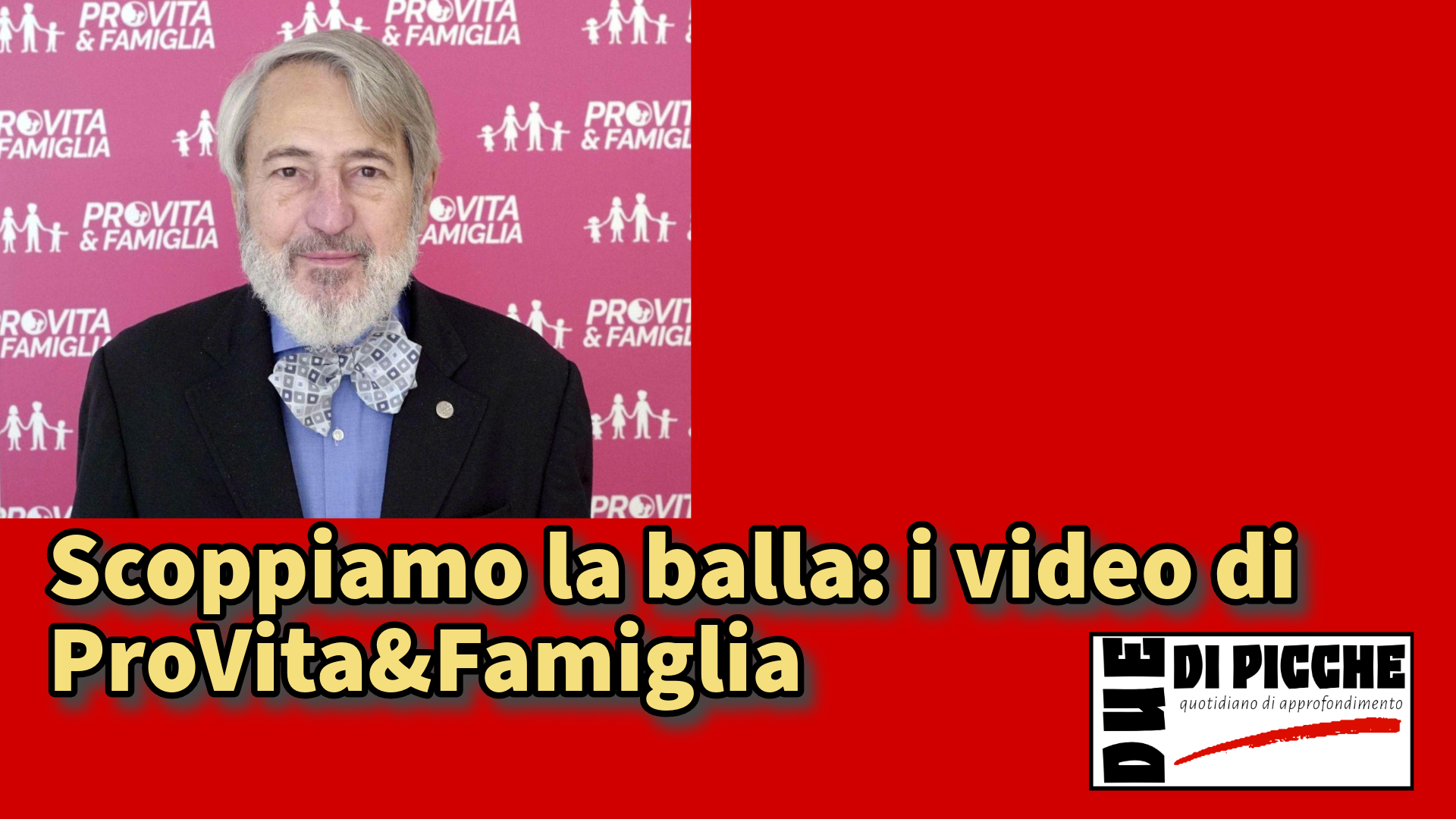 Scoppiamo la balla: i video di ProVita&Famiglia – Una bella e intelligente iniziativa degli amici di ProVita&Famiglia: brevi video dove il presidente della Onlus, Toni Brandi – con videocamera e papillon di ordinanza – smonta in pochi minuti le bufale costruite dalla propaganda liberale sui temi etici e sulla procreazione.