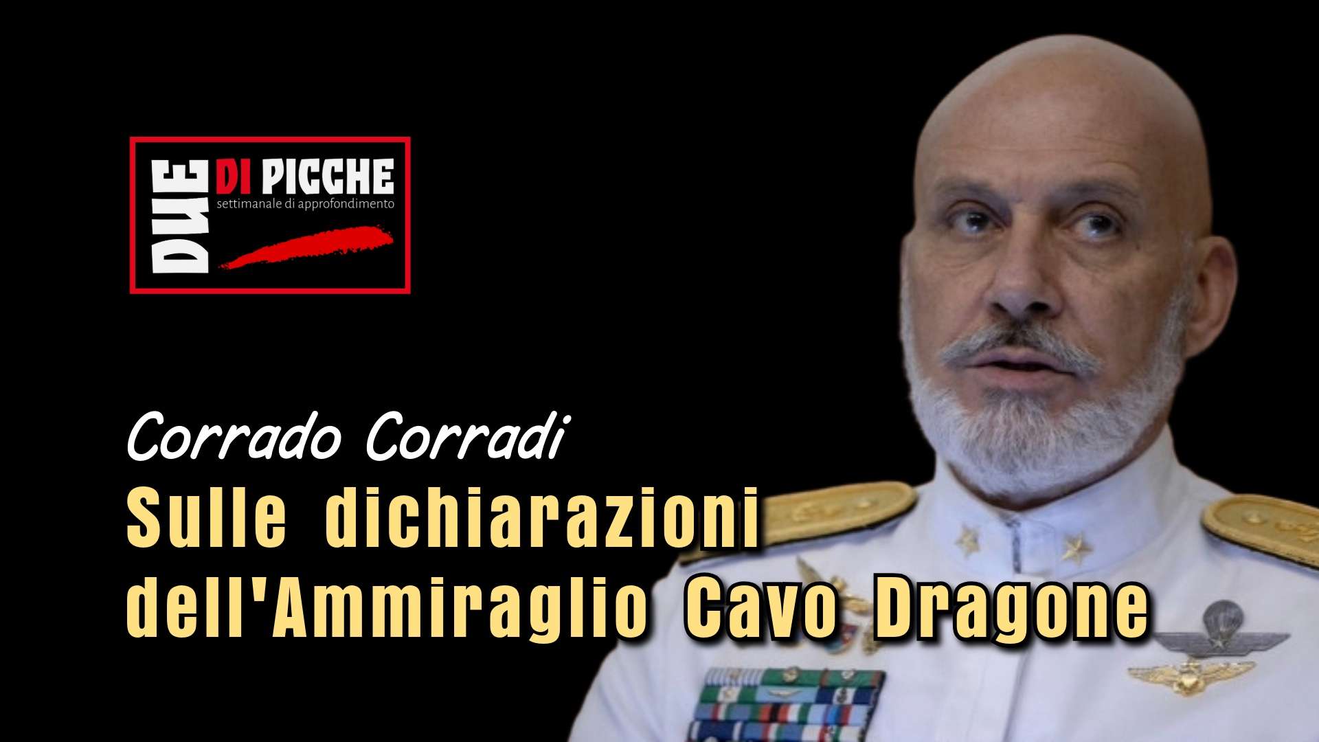 Mi riferisco all’Ammiraglio Cavo Dragone, presidente del Comitato militare della NATO (ma guarda un po’!), già stigmatizzato su Facebook dal commilitone Fabio Filomeni, per aver detto quello che direbbe non un soldato, ma un maggiordomo al padrone di casa: «spero che vengano inasprite le sanzioni mirate a far crescere la tensione interna contro Putin».